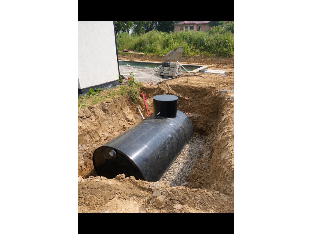 samonosnou plastovou nádrž o objemu 4 m³ určenou k uložení do země bez betonáže,